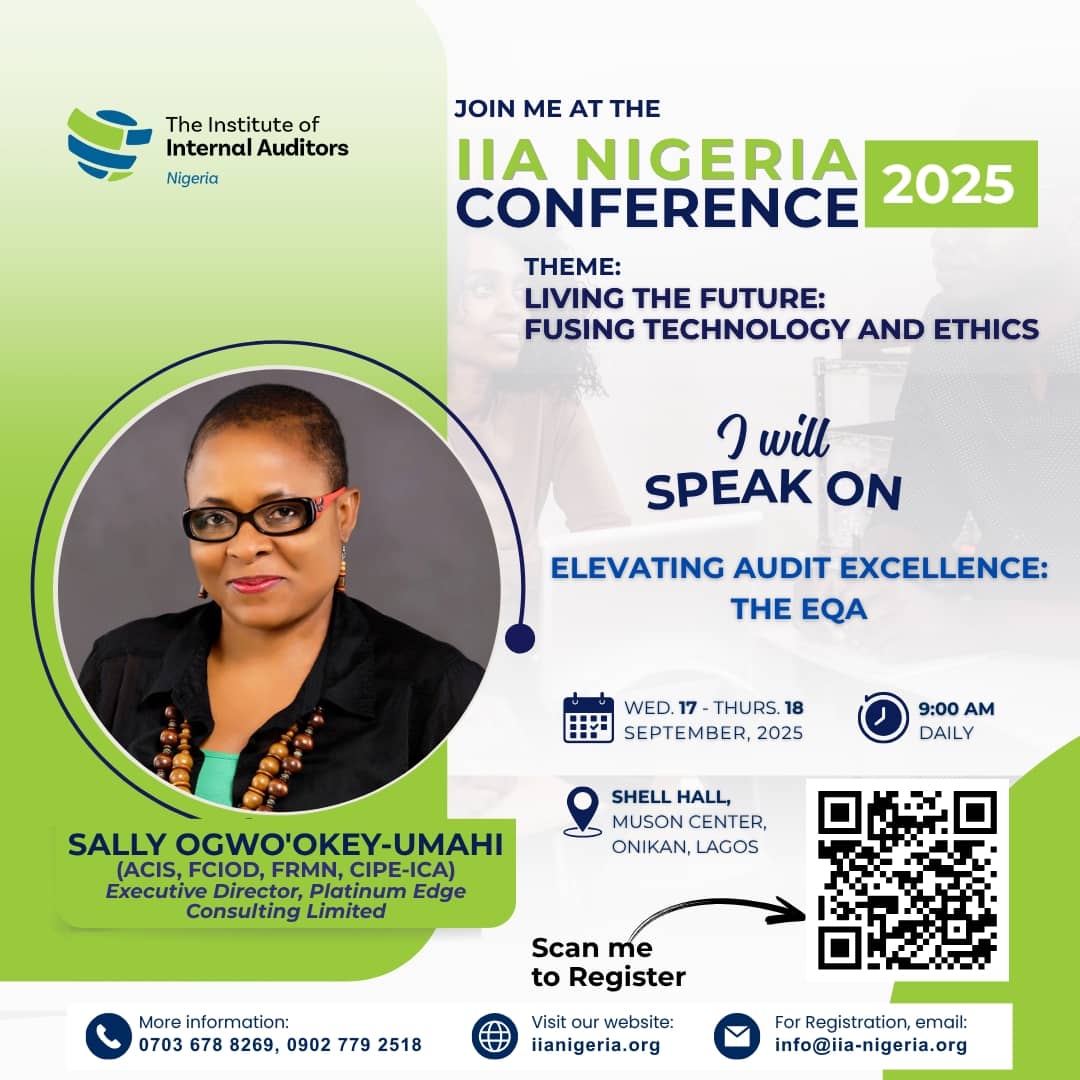 Sally is also an accomplished author, having written books on “Corporate Governance” and “Professional Conducts for bankers. These works have been adopted by the Chartered Institute of Bankers Nigeria (CIBN) as study materials for its student members.