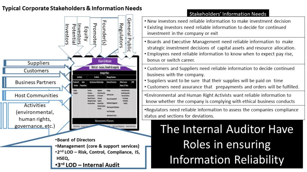 Information RELIABILITY comes from the CREDIBILITY brought to bear on the work performance and preparation of the performance reports and presentations required for example by the board and executive management to support strategic decisions and choice of actions to move the company forward. Through the board oversight role, the boards want to monitor the successful execution of the strategic initiatives they approved.