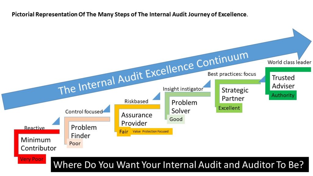 Below is the pictorial representation of the Internal Audit Excellence Continuum depicting the starting points, steps in between and no fixed end.