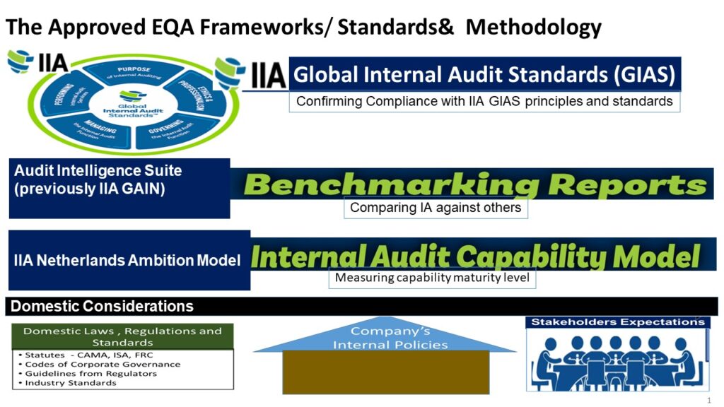 IIA Global Internal Audit Standards (GIAS) provides the guidelines for conducting EQA and comprises •